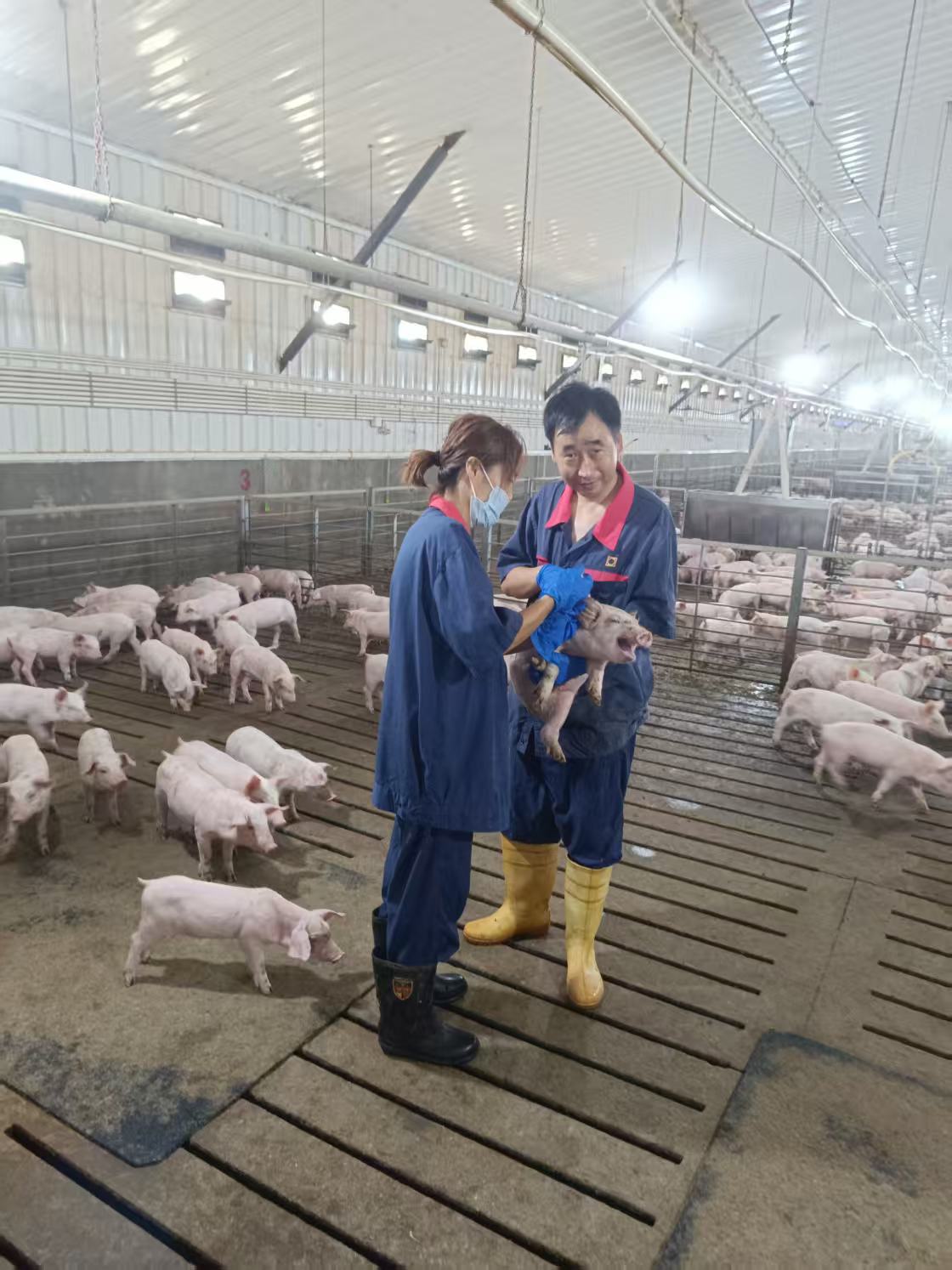 2022年12月,何存軍向場區推薦了自己的愛人沈楊。沈楊的工作實力更“不容小覷”。加入正大后,短短四個月她就出色勝任了崗位要求,甚至在干好自己本職工作的同時,還積極主動幫助同事沖洗售豬平臺、處理淘汰豬等,這種不輸男兒的“女將”風范,深深感染著場區的每位同事。沈楊從未停下探索的腳步,利用工作之余主動學習數據分析處理等方面的知識。一方面提高豬場生產的效率和質量,努力做好豬場的工作;另一方面擴展自身技能,通過持續學習和自我提升,讓自己成為復合型人才。