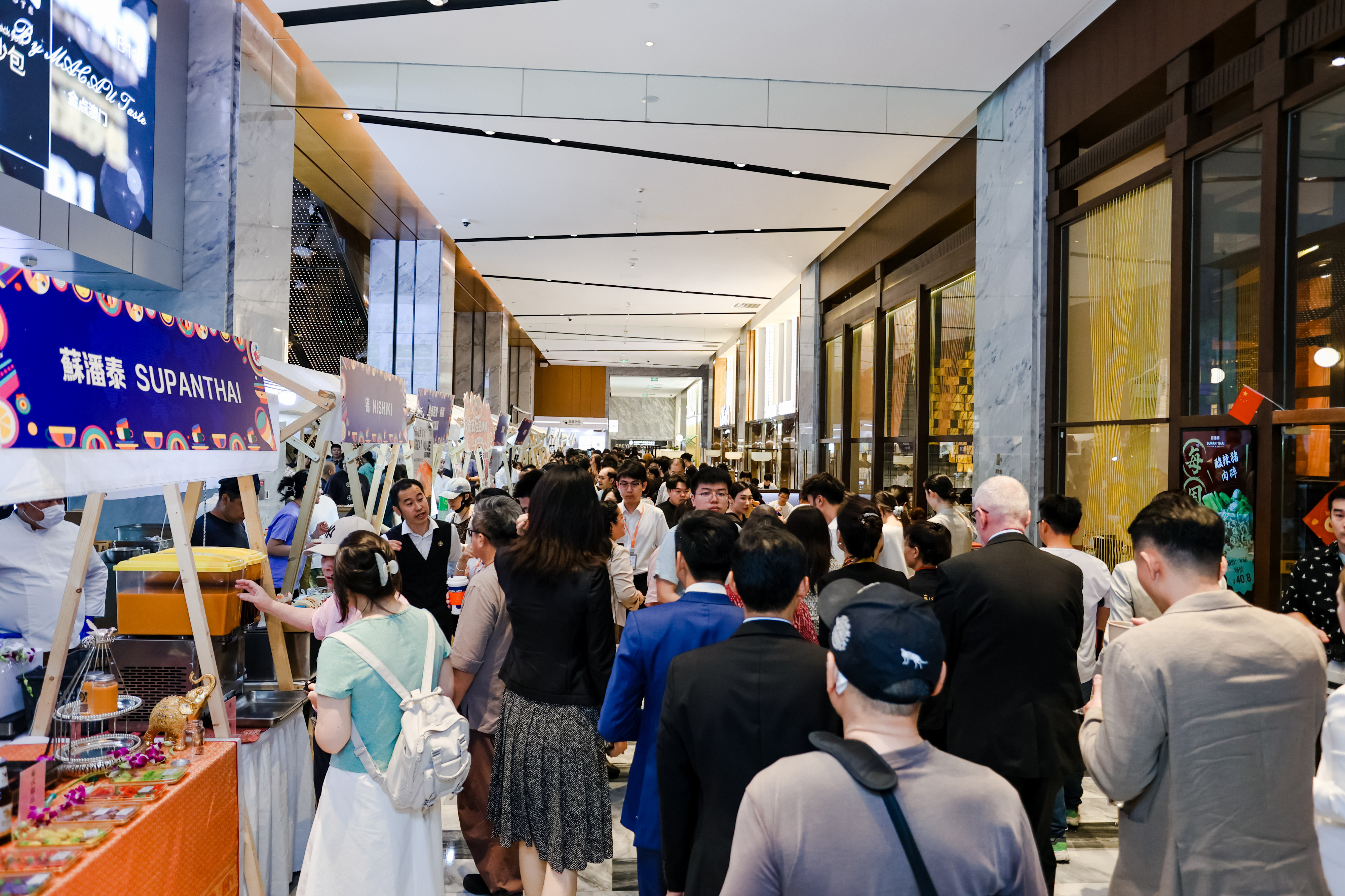 啟幕儀式結束后,嘉賓前往位于正大中心B1的無國界美食市集。本次市集涵蓋來自印度尼西亞、黎巴嫩、芬蘭等地的國際美食,匯聚近50家國際餐飲品牌,有米其林指南入選餐廳湘上湘和錦NISHIKI、泰餐蘇潘泰、越南餐廳福萬、云南菜滇香一廚等。此外,市集還提供了意大利冰淇淋、美式漢堡精釀、進口零食等多樣選擇,為CBD商務人群打造限時味覺之旅。