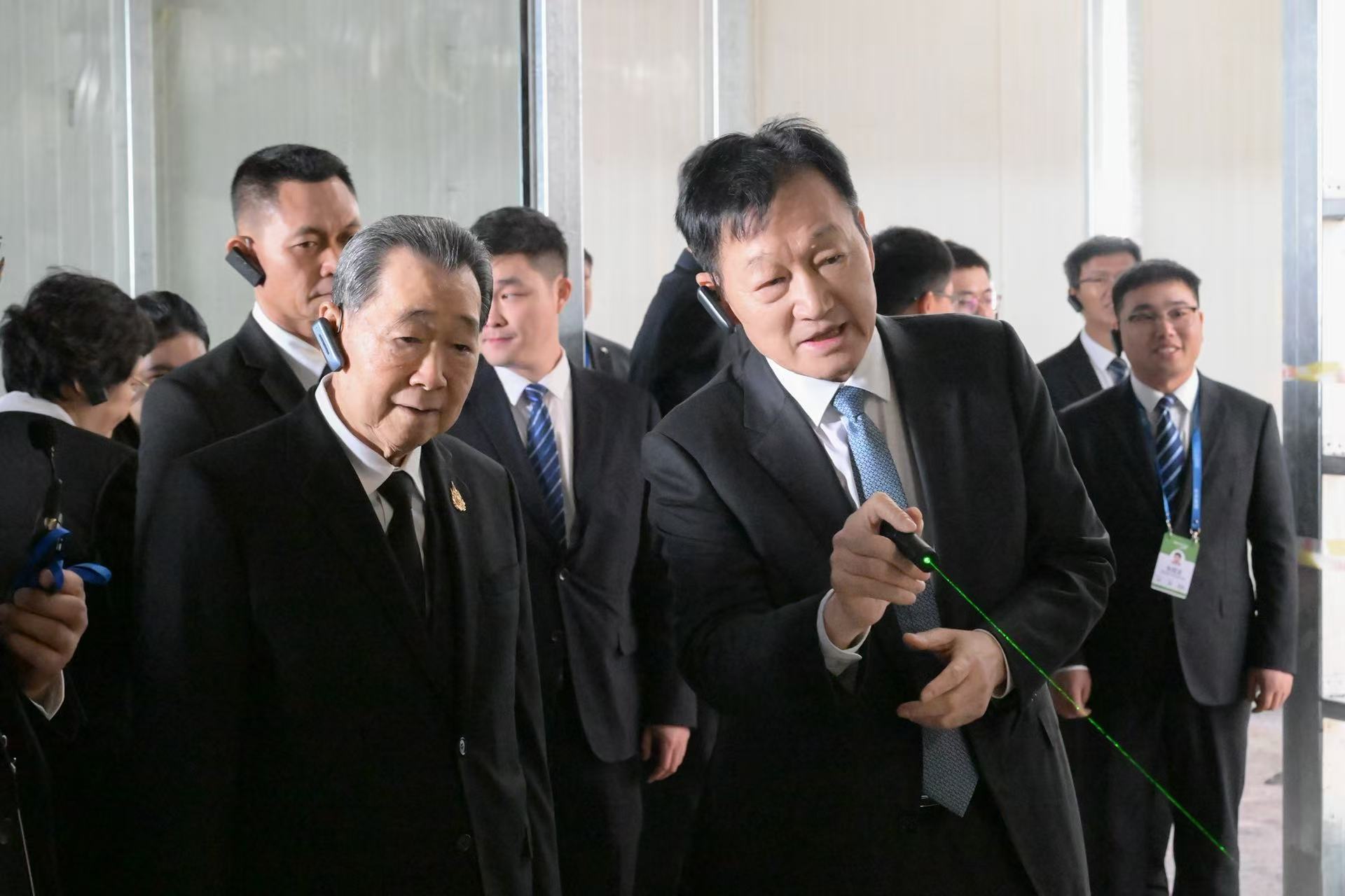 在秦英林董事長的陪同下,謝國民集團(tuán)資深董事長、謝吉人集團(tuán)董事長一行參觀了牧原集團(tuán)生豬育種中心,對(duì)牧原在生豬育種領(lǐng)域的創(chuàng)新實(shí)踐與技術(shù)成果表示贊賞。