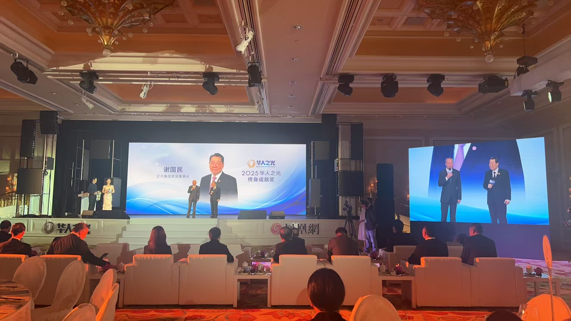 3日晚,謝國(guó)民集團(tuán)資深董事長(zhǎng)、謝吉人集團(tuán)董事長(zhǎng)參加了首屆“華人之光”年度人物頒獎(jiǎng)盛典。本屆盛典以“華人之光,照亮世界”為主題,旨在禮贊在實(shí)業(yè)報(bào)國(guó)、科技創(chuàng)新、文化傳播、全球治理等領(lǐng)域作出卓越貢獻(xiàn)的杰出華人代表,謝國(guó)民集團(tuán)資深董事長(zhǎng)獲頒2025華人之光終身成就獎(jiǎng),鳳凰衛(wèi)視總編輯、執(zhí)行董事、鳳凰網(wǎng)董事長(zhǎng)兼CEO孫玉勝為其頒獎(jiǎng)。