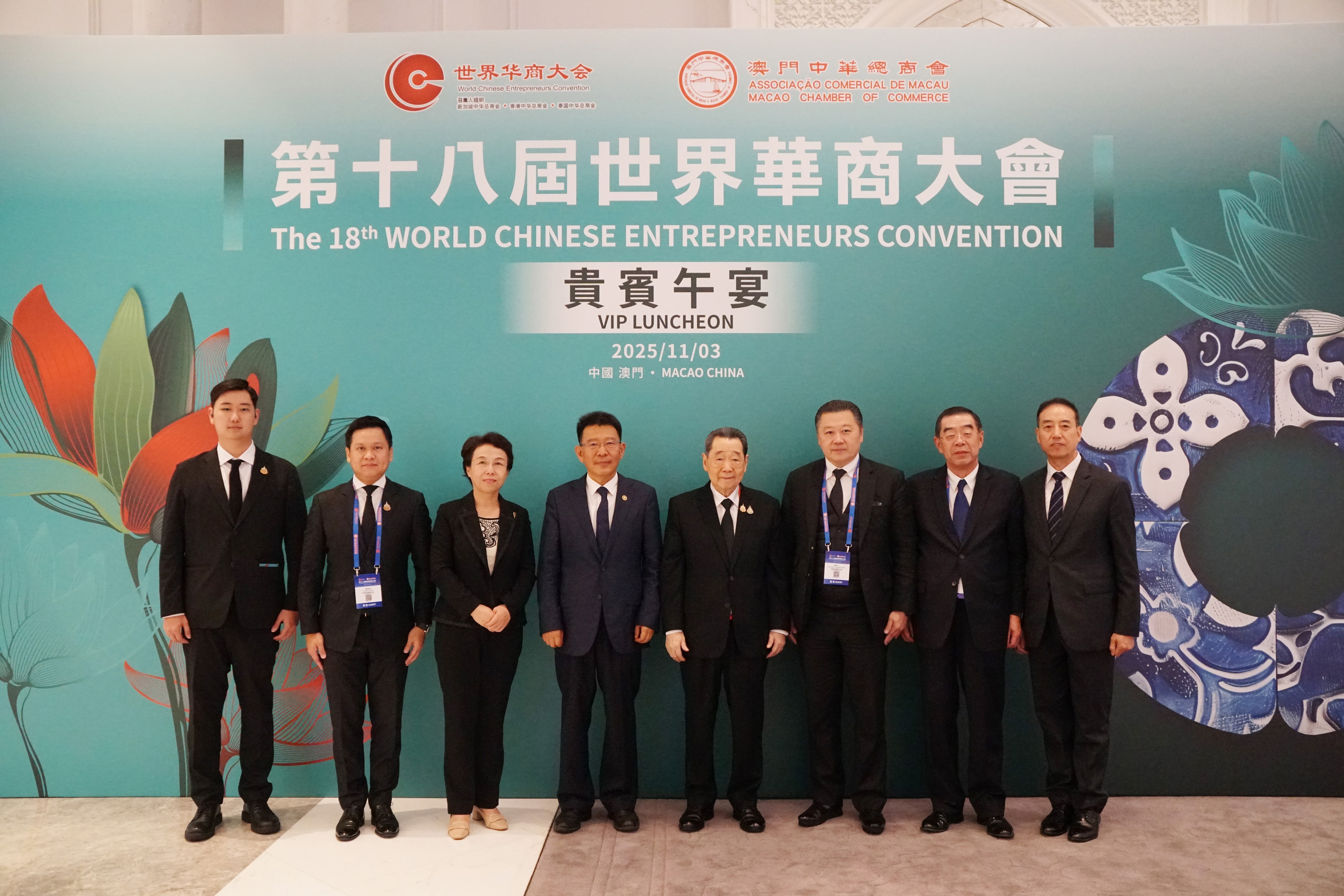 11月3日,由澳門中華總商會(huì)主辦的第十八屆世界華商大會(huì)在澳門隆重開幕。中共中央政治局常委、全國(guó)政協(xié)主席王滬寧發(fā)來(lái)賀信,向大會(huì)的召開表示熱烈祝賀,向與會(huì)的全球華商代表、海內(nèi)外僑胞及各界人士致以誠(chéng)摯的問(wèn)候。全國(guó)政協(xié)副主席何厚鏵、咸輝,中央和國(guó)家機(jī)關(guān)有關(guān)部門、有關(guān)團(tuán)體負(fù)責(zé)同志,澳門特別行政區(qū)行政長(zhǎng)官岑浩輝及相關(guān)政府官員,中央駐澳機(jī)構(gòu)主要負(fù)責(zé)同志,以及來(lái)自全球50多個(gè)國(guó)家和地區(qū)的華商代表、專家學(xué)者、政企界人士共4000余人參會(huì)。中國(guó)僑商聯(lián)合會(huì)會(huì)長(zhǎng)、正大集團(tuán)資深董事長(zhǎng)謝國(guó)民率中國(guó)僑商聯(lián)合會(huì)近80位僑商組成的代表團(tuán)出席大會(huì),中國(guó)僑商聯(lián)合會(huì)常務(wù)副會(huì)長(zhǎng)、正大集團(tuán)董事長(zhǎng)謝吉人出席大會(huì)。