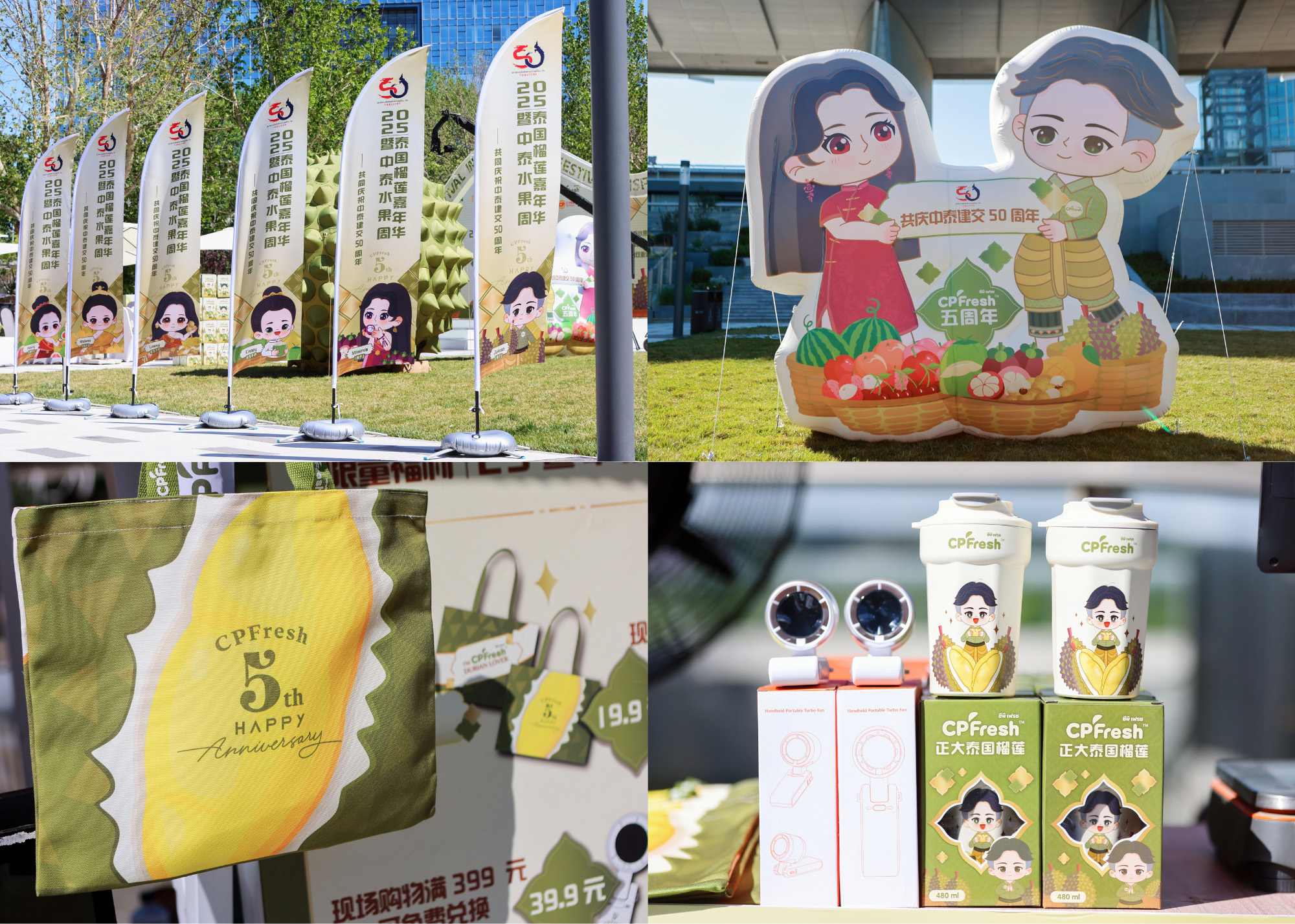 ▲CPFresh正大泰國水果五周年活動展示以及品牌周邊。