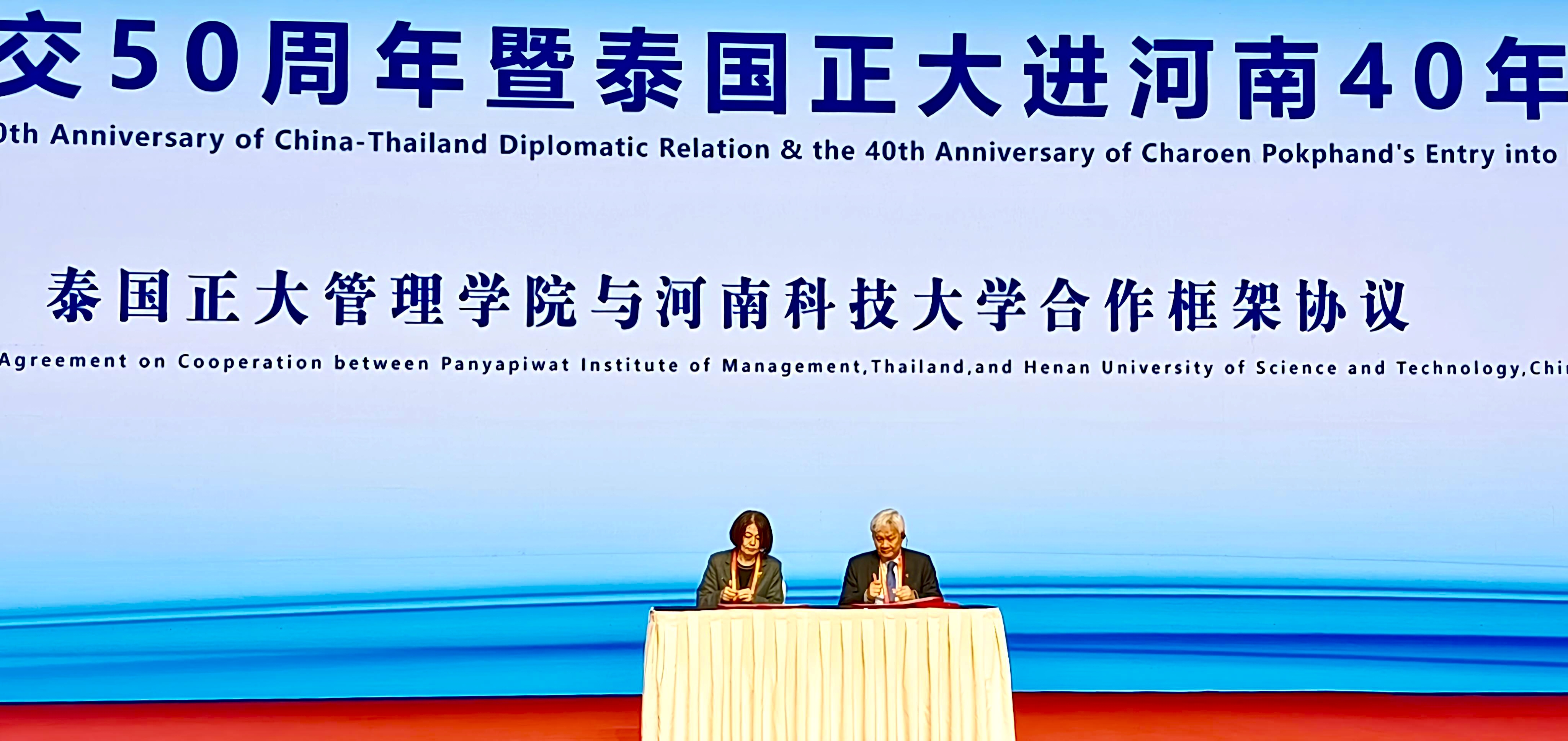 活動期間,來自洛陽市、開封市、漯河市政府的相關負責人分別作市情推介,分享各自發展優勢,以及與正大集團在農牧食品、智能制造、城市開發等領域的合作成果。在簽約環節,泰國正大管理學院分別與河南科技大學、鄭州信息工程職業學院簽署合作框架協議,進一步推動中泰在教育與人才培養方面的深度合作。